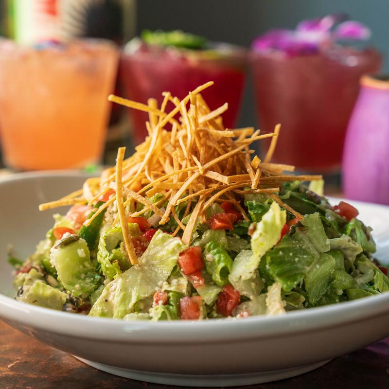 Romaine lettuce, pumpkin seeds, tortilla strips, cotija cheese, green onions, pico de gallo, and avocado Caesar dressing.
